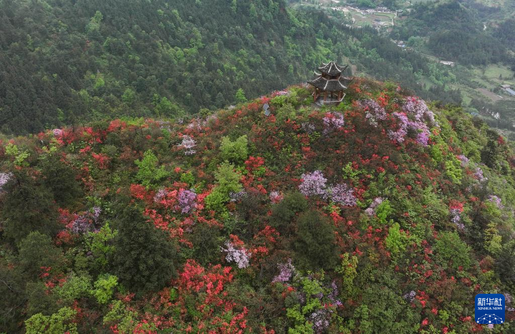 4月21日在贵州省遵义市播州区洪关苗族乡太阳坪景区拍摄的漫山遍野的杜鹃花(无人机全景照片)。新华社发(罗星汉摄)