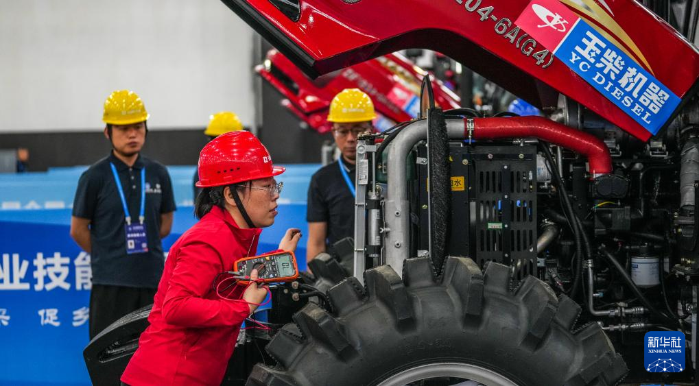这是5月8日拍摄的第二届全国乡村振兴职业技能大赛农机修理项目比赛现场。新华社记者 刘续 摄