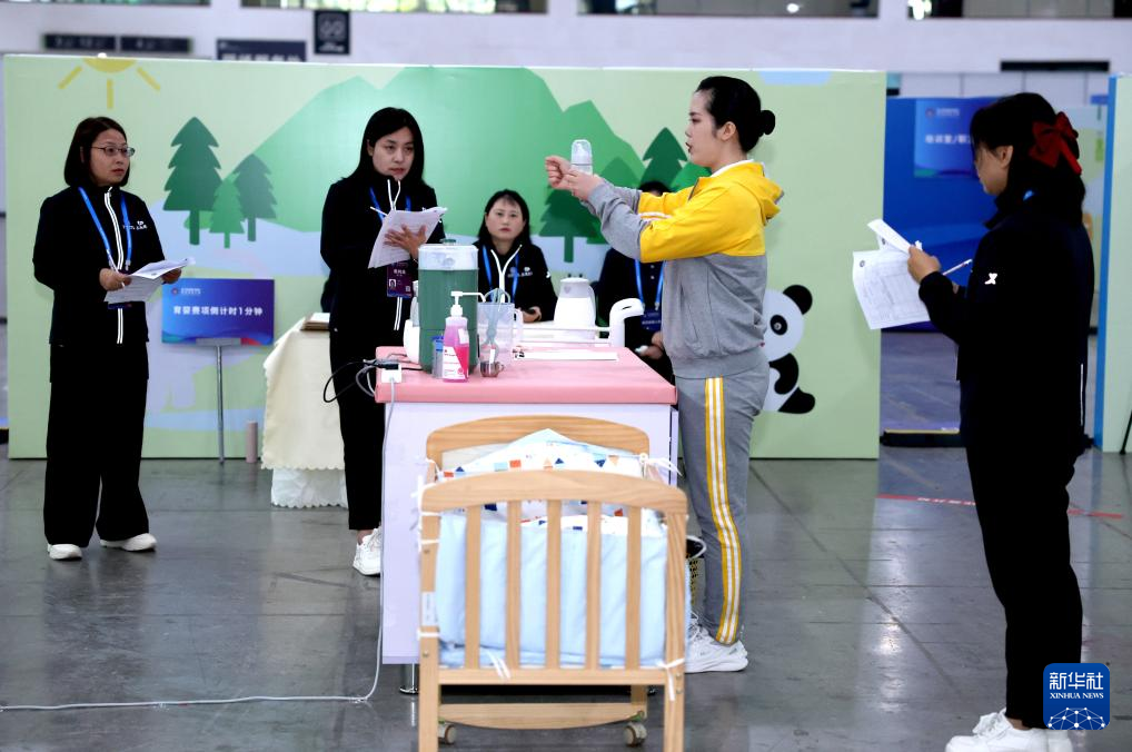 这是5月8日拍摄的第二届全国乡村振兴职业技能大赛育婴项目比赛现场。新华社记者 刘续 摄