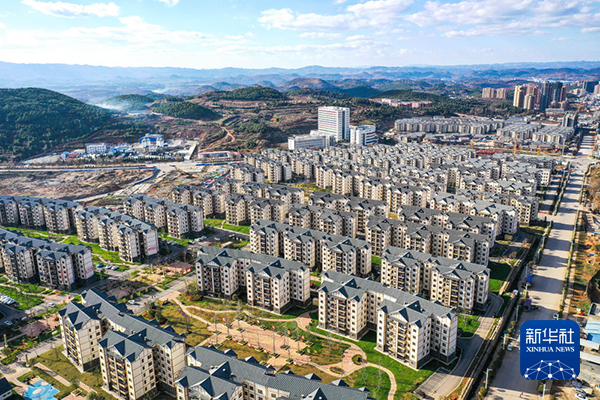 贵州省威宁县五里岗街道朝阳新城易地扶贫搬迁安置小区(2021年11月28日摄,无人机照片)。新华社记者 杨文斌 摄