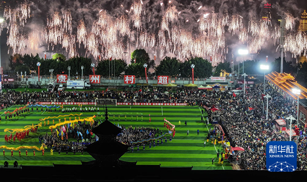 演员在贵州省榕江县举办的2024年第二届贵州“村超”总决赛开幕式上表演节目(2024年3月16日摄)。新华社记者 杨文斌 摄