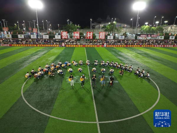 新华社贵阳5月14日电(记者罗羽)13日晚8点左右,在位于贵州省黔东南苗族侗族自治州榕江县的“村超”球场,由“村超”决赛阶段20支球队的优秀球员集体参与的“全明星赛”在夏日的徐徐夜风中开球,标志着为期一个月的“村超”一周年庆祝活动正式拉开帷幕。