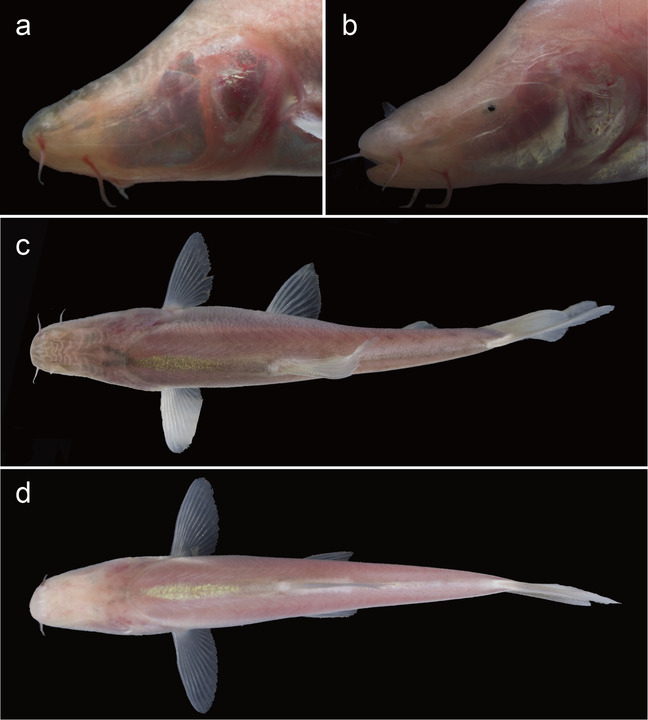 “贵阳金线鲃”是一种盲鱼,眼球已经退化形成一个不具有完整眼球结构的眼点或消失埋于皮下;体表色素消失,通体粉色,鳍透明;体鳞退化,部分埋于皮下。它没有头角或背角,口须短,胸鳍较长,末端超过腹鳍起点。基于形态学与分子系统生物学研究结果显示,“贵阳金线鲃”与金线鲃属其他物种区别明显。