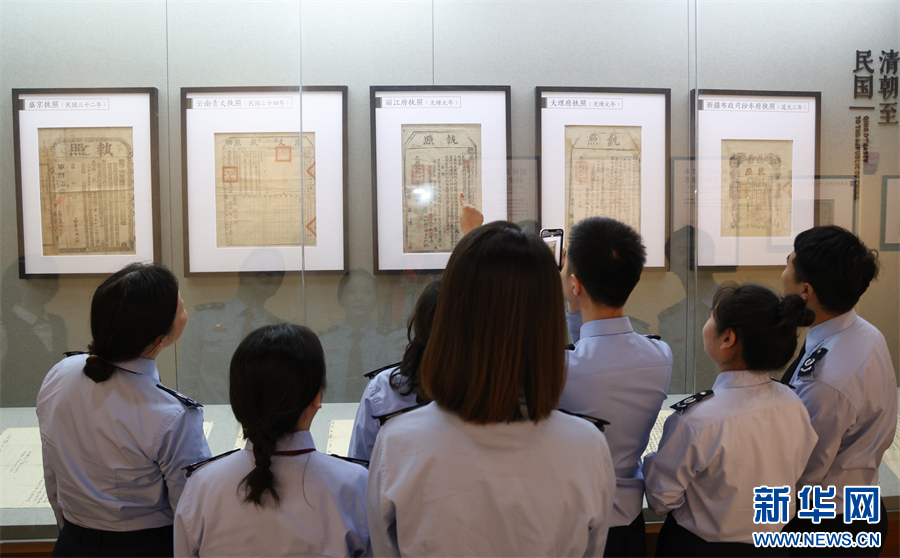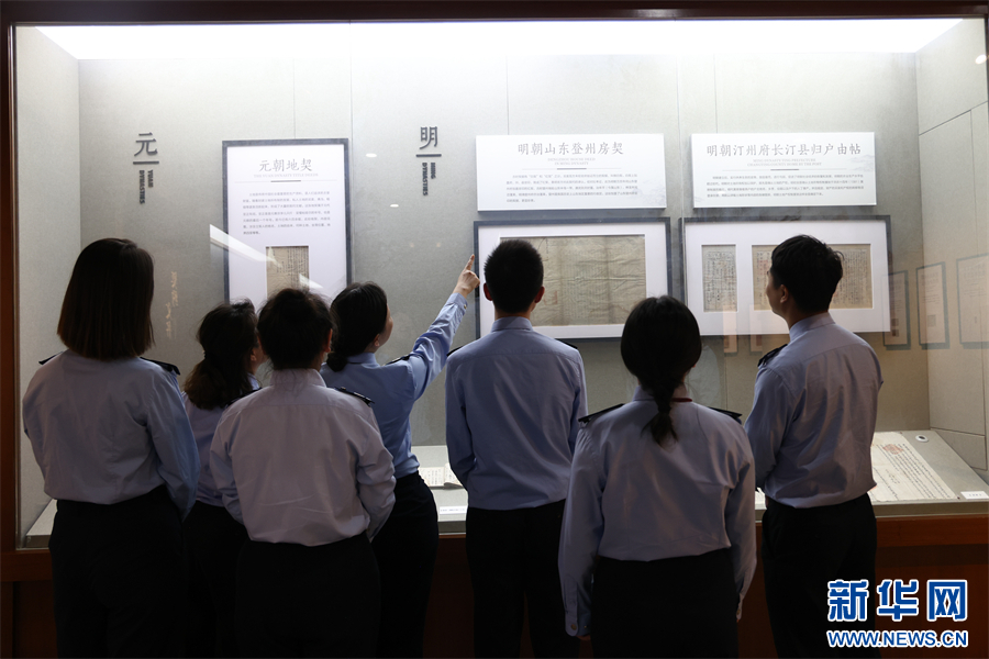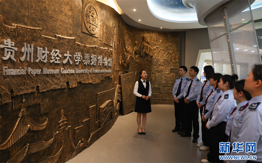 贵阳市云岩区税务局的青年干部在贵州财经大学票据博物馆参观(5月14日摄)。新华网发(张晖 摄)