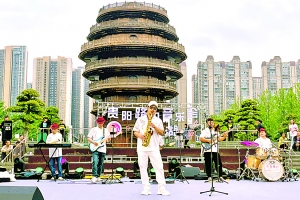 乐手在贵阳路边音乐会·泉湖现场演出。
