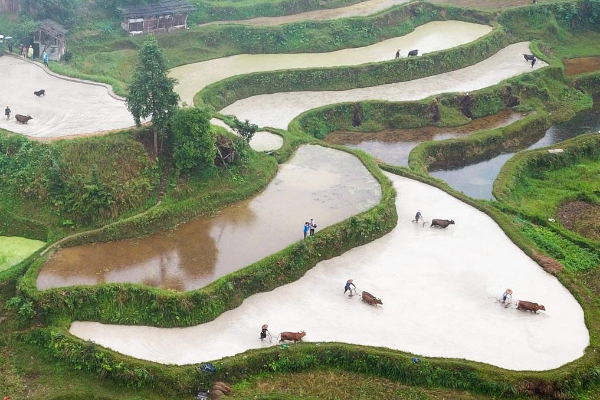 5月18日至19日,贵州省黎平县举办第八届牛耕文化节。当地农民牵着耕牛来到梯田,向游客展示当地传统农耕文化。文化节期间还将举办芦笙舞会、参观种子博物馆等活动。