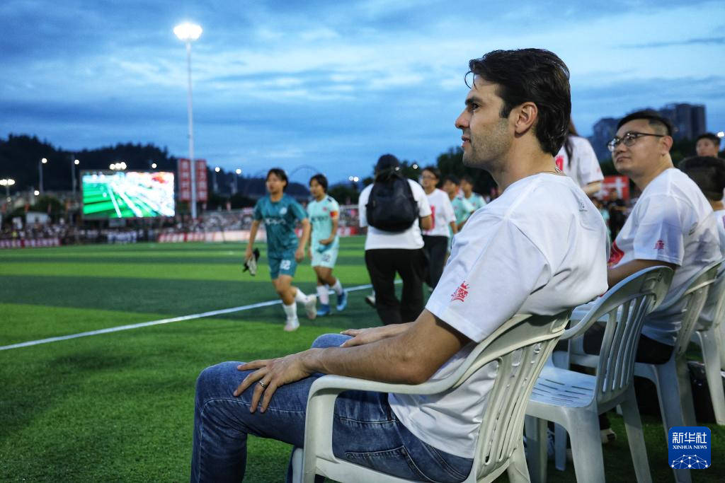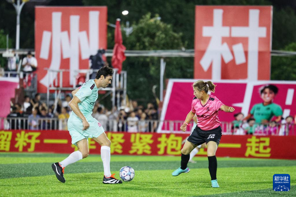 当日,“逐梦”冠军公益赛在贵州省黔东南苗族侗族自治州榕江县“村超”球场举行。本次公益赛包括“逐梦”冠军青少年女足公益赛与“逐梦”冠军明星公益赛,巴西足球名宿卡卡、前中国女足队员王坤等亮相球场。