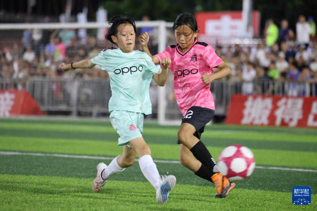 5月27日,参赛球员在“逐梦”冠军青少年女足公益赛中拼抢。新华社记者 刘续 摄