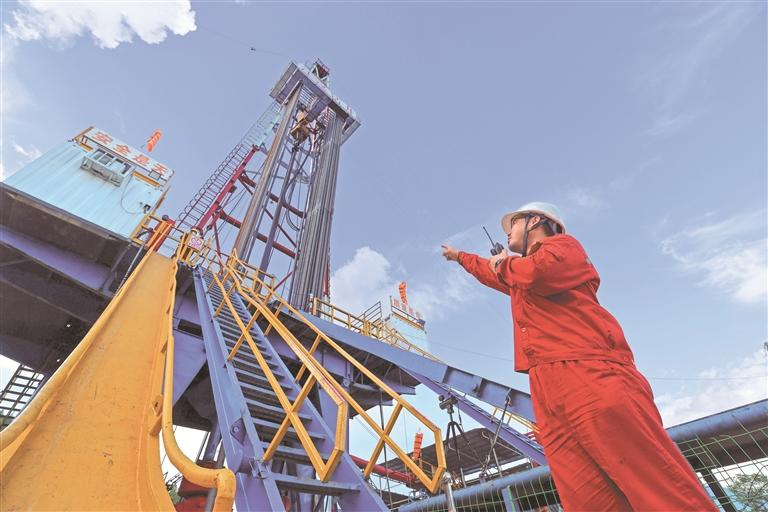 工人在正安县安场镇“安页3井”钻井平台工作。赵永章 摄(贵州图片库发)
