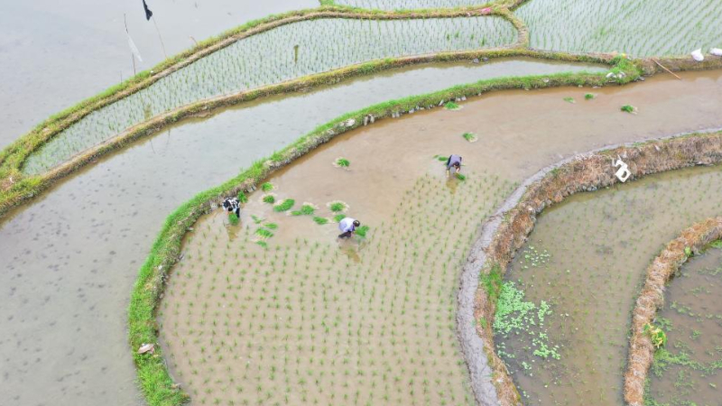 6月6日,贵州省安顺市第七小学学生在老师的指导下做眼保健操。新华社发(陈熙 摄)