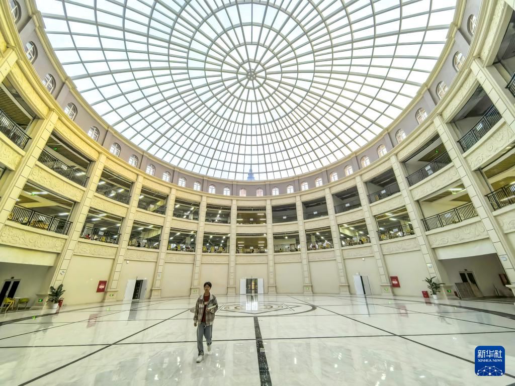 6月4日,邓广伟在贵州黔南科技学院的图书馆借阅图书归来(手机照片)。新华社记者 杨文斌 摄