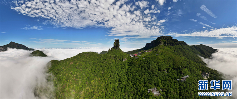 6月6日,在世界自然遗产地梵净山景区拍摄的夏日风光(无人机照片)。新华网发(李鹤 摄)