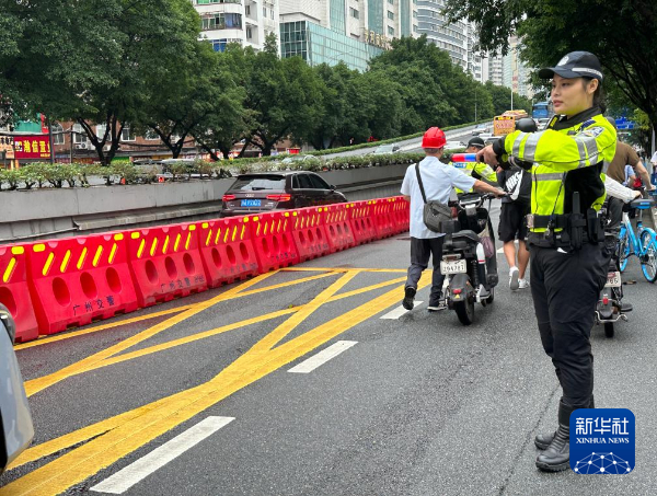 6月7日上午,交警在华南师范大学附属中学考点外指挥交通。新华社记者杨淑馨 摄