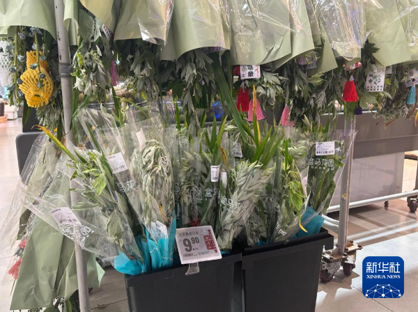 这是在一家盒马门店内售卖的艾草菖蒲花束。(受访对象供图)
