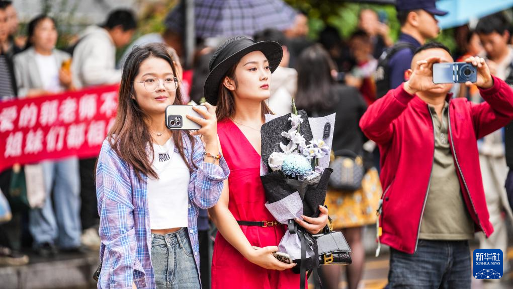 6月9日,考生和家长在贵阳市乌当中学考点外合影。新华社记者 陶亮 摄