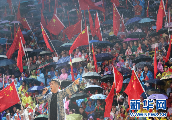 孙楠现场演唱歌曲《红旗飘飘》。新华网发(孔祥乔摄)
