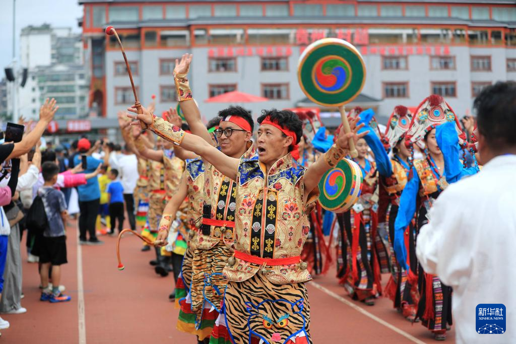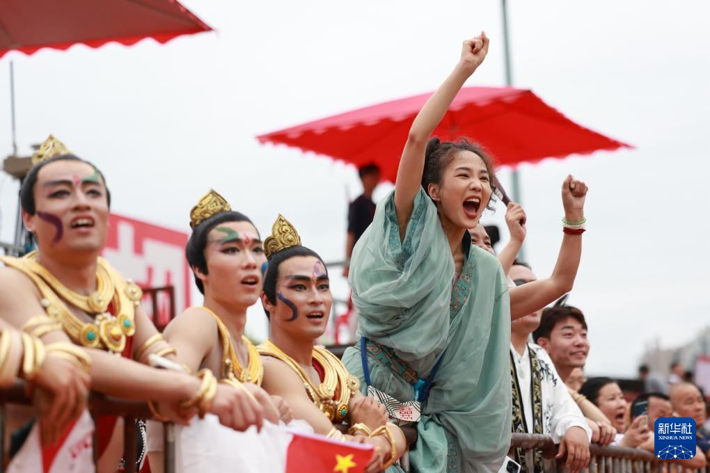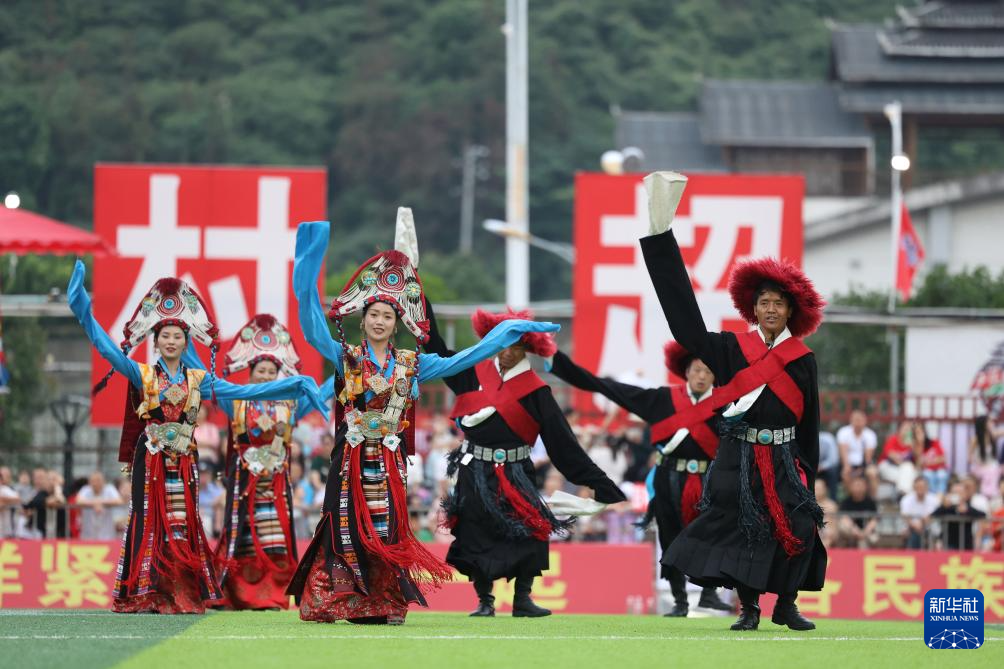 6月10日,演员在比赛间隙表演萨迦索舞。新华社记者 刘续 摄