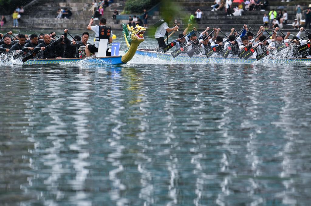6月10日,2024年民体杯全国龙舟、独竹漂比赛在贵州省黔东南苗族侗族自治州镇远古城开幕。来自全国的53支龙舟和独竹漂队伍,在镇远古城的㵲阳河上参加为期三天的水上竞技。赛事期间同时举办镇远县第四十届赛龙舟文化节,观众和游客可体验非遗集市、“千人抢鸭子”等丰富多彩的活动。