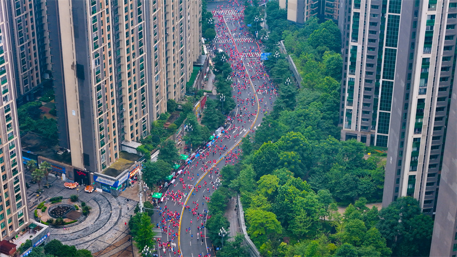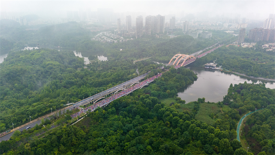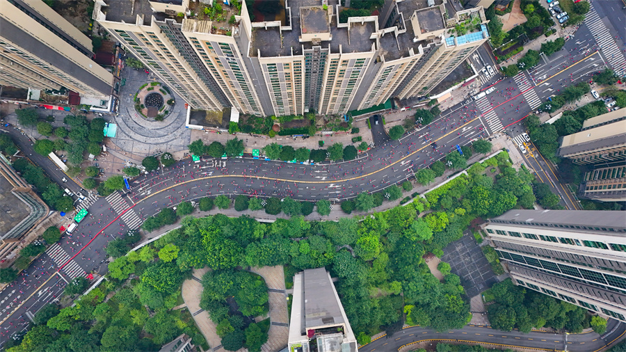 航拍2024贵阳马拉松赛现场。新华网发(刘林芳 摄)