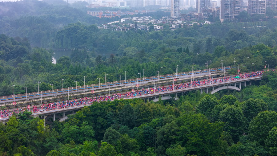 航拍2024贵阳马拉松赛现场。新华网发(龙建睿 摄)