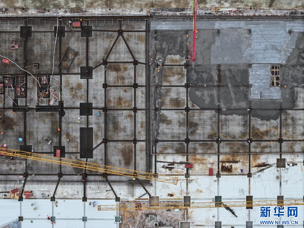 6月21日,工作人员正在浇筑底板。新华网发(任梅 摄)