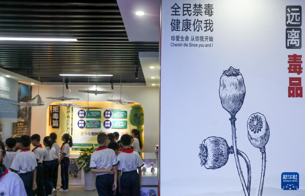 6月25日,学生在贵州省贵阳市乌当区新九学校毒品预防教育基地参观。新华社发(袁福洪 摄)