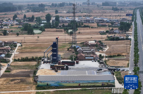 2024年6月12日拍摄的宿迁市洋河新区罗庄村粮食烘干点(无人机照片)。该粮食烘干点由村党支部筹建,为本地及周边乡镇农户提供服务的同时,也增加了村集体经济收入。新华社记者 季春鹏 摄