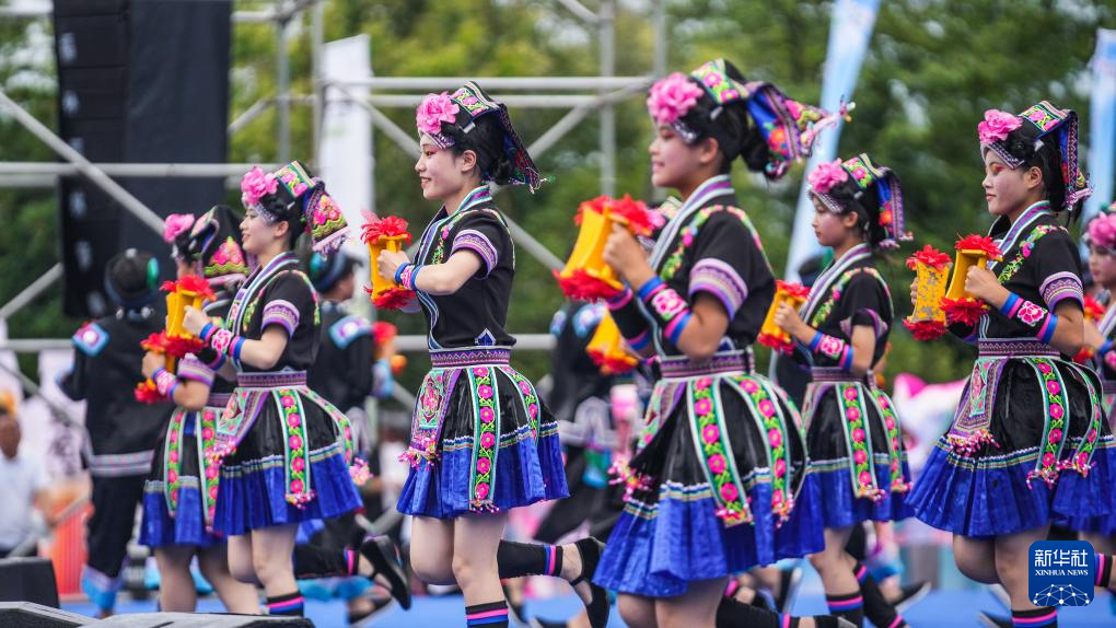7月11日,当地群众在六盘水市六枝特区月亮河畔参加“六月六”庆祝活动。新华社记者 陶亮 摄