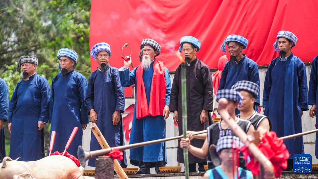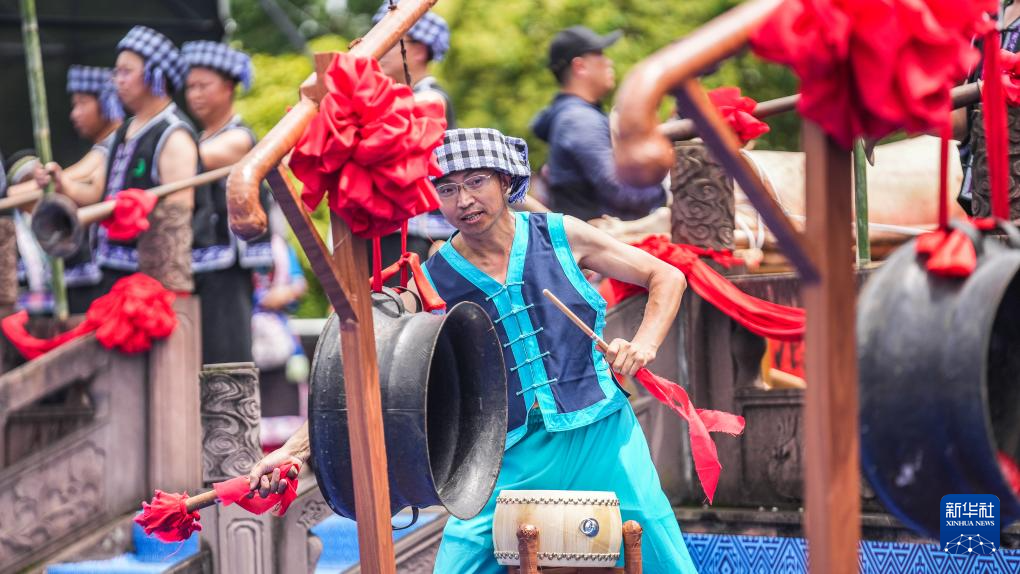 7月11日,当地群众在六盘水市六枝特区月亮河畔参加传统民俗活动。新华社记者 陶亮 摄