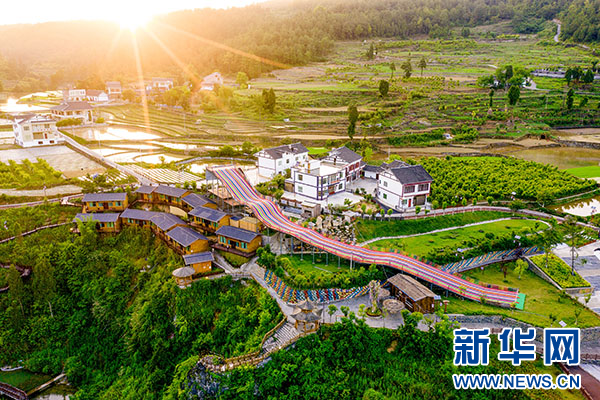 图为贵州省黔西市中建乡月亮湾景区悬崖山庄。新华网发(燕江涛 摄)