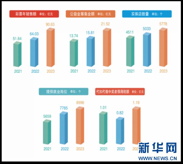 据介绍,2023年,全省体育彩票销售突破90亿元,筹集体彩公益金21.52亿元,两项数据均再创历史新高。此外,贵州体彩还提供就业岗位8900余个,代扣代缴中奖者个人偶然所得税1.19亿元,在社会公益和民生领域发挥了积极作用。