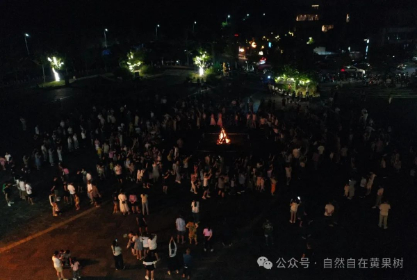 炽烈的火焰霎时点燃了现场每个人的激情,众人手拉手、肩搭肩,围绕着篝火跳起欢快的舞蹈。四周的游客不论来自何方,都被这份热情所感染,纷纷加入这场欢腾之中。