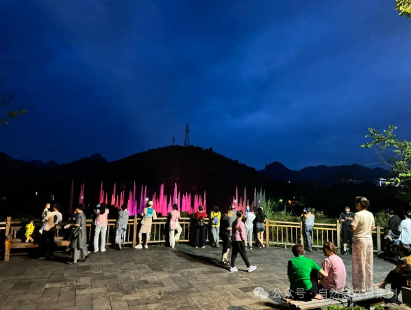 晚会的另一大亮点是音乐喷泉表演。黄果树湿地公园的音乐喷泉以其绚丽多彩的灯光和变幻莫测的水形著称,古老的神话故事和黄果树本土民族风情解说被巧妙融入其中,给音乐喷泉增添了几分神秘感。随着音乐的起伏,水柱随之舞动,形成了一个个美丽的图案,仿佛是在诉说着一个个动人的故事,游客们纷纷拿起手机记录下这美妙的一刻。