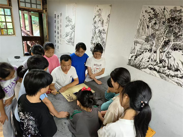 国学班正式开班后,吸引了外地大学生及老师前来支教,让当地留守儿童免费享受国学滋养和传统文化熏陶。“我就是这里出来的,我愿意反哺家乡,带更多的孩子走出大山。”石阡县春晖使者、现就职于浙江旅游职业学院、暑期到国学班义务教学的中国美术学院硕士毕业生刘文林说。