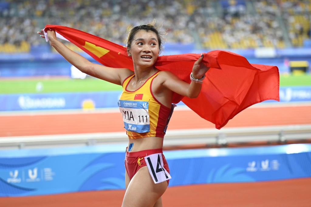 2023年,在成都第31届世界大学生夏季运动会田径项目女子10000米决赛中,夏雨雨以33分48秒35的成绩夺得冠军。她在比赛最后一圈的高燃冲刺,让很多人记住了她。