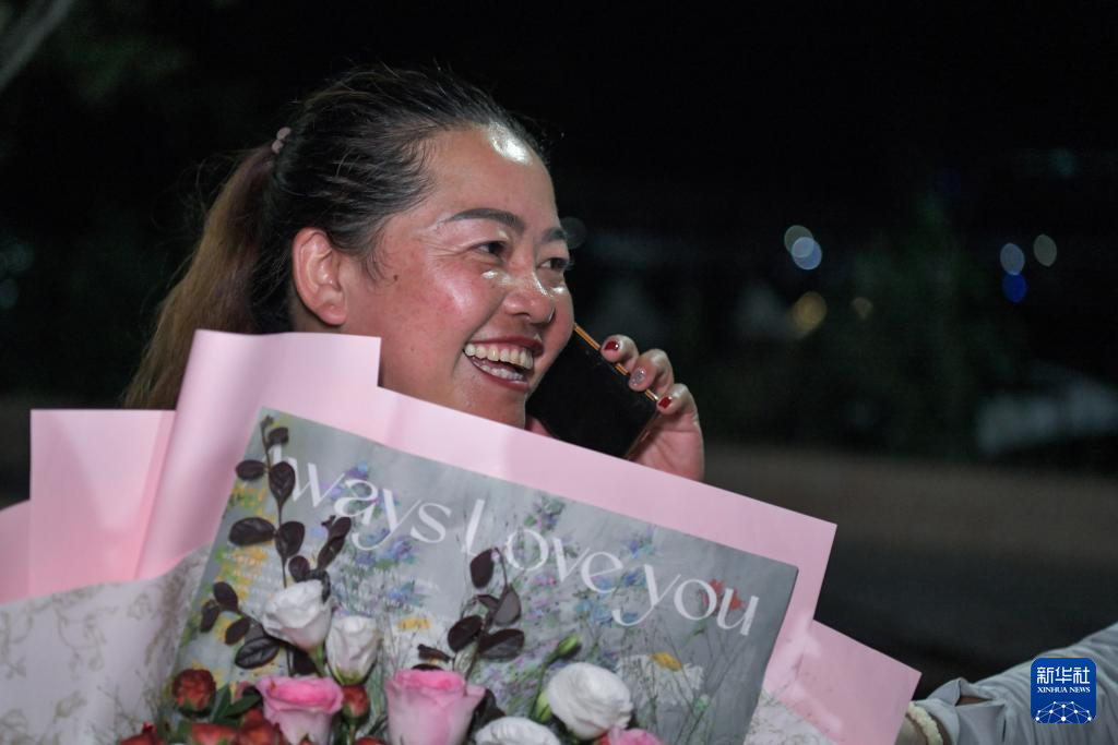 8月10日,母亲黎燕在接听女儿吴愉从巴黎打来的夺冠报喜电话。新华社记者 杨文斌 摄