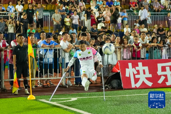 新华社贵阳8月10日电(记者罗羽)10日晚,在贵州省黔东南苗族侗族自治州榕江县的贵州“村超”足球场,一场首次由残疾人和健全人组队参加的“村超”友谊赛激情上演,球员们用拼搏和激情赢得了现场观众的呐喊。
