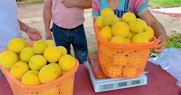 “这个桃子真甜呀,可能是因为最近天气好的原因,阳光充足,它的甜度简直是爆表啊。今天我和我的小姐妹来这个果园采摘,我们一起采摘了二三十斤的黄桃,简直是太棒了。”游客袁芷莹说。
