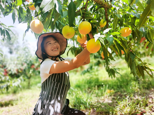 走进桃园,绿叶掩映间,一个个果肉饱满的黄桃在阳光的照耀下显得格外诱人。伴随着浓郁的桃香,游客们手提果篮穿梭于绿油油的桃林中,品尝、采摘,尽情体验田园生活的乐趣。