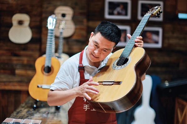 把一根木头变成一把吉他,需要约200道工序。板材挑选、切割成形、拉装弦线、调音检测……郑传玖和郑传祥边干边看边学,从一线工人做到企业中层,掌握了技术,学会了管理。用打工攒下的“第一桶金”,兄弟俩于2007年合伙创立了广州神曲公司。