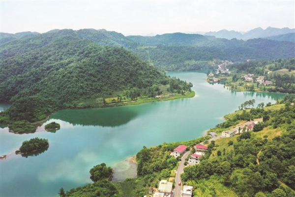 7月底,福泉市金山街道岔河村,绿水青山与乡村民居交相辉映,勾勒出一幅人与自然和谐共生的美丽画卷。易盛武 摄(贵州图片库发)