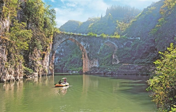 葛镜桥横卧碧波。 (福泉市文化广电和旅游局供图)