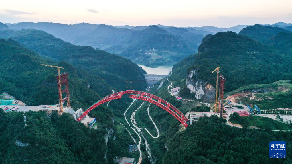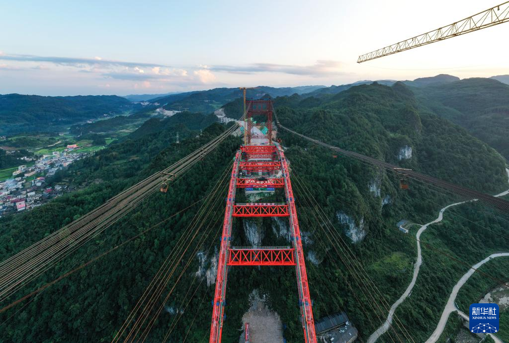 8月21日,由贵州桥梁集团承建的贵阳至平塘高速公路马场河特大桥主拱顺利合龙。马场河特大桥位于贵州省贵定县盘江镇马场河村,大桥全长381.5米、主跨260米,桥面设计为双向六车道,是G7522贵阳至北海高速公路贵阳至平塘段控制性工程。(记者:杨文斌 报道员:李佳隆)
