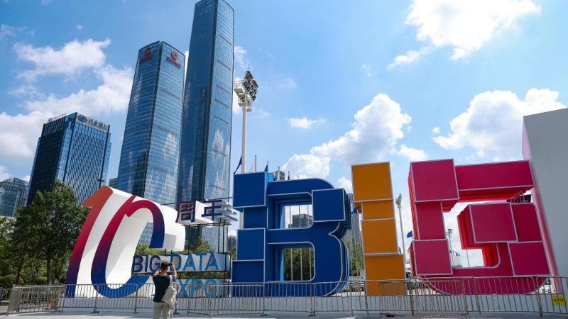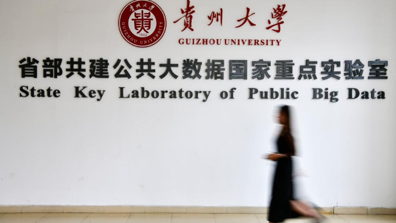 8月20日,工人在贵阳至平塘高速公路马场河特大桥上施工(无人机照片)。新华社记者 杨文斌 摄