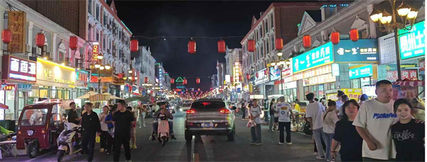 夜幕降临,安顺经开区多彩万象旅游城内灯光璀璨,热闹非凡。来自全国各地的游客和周边市民穿梭在街上,或驻足欣赏夜景,或品尝各类美食。沿街的特色餐馆座无虚席,各种美食香气弥漫,游客们在此尽享舌尖上的美味,感受浓厚的地方饮食文化氛围。