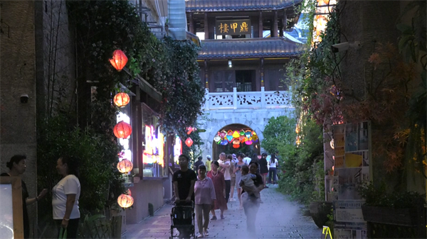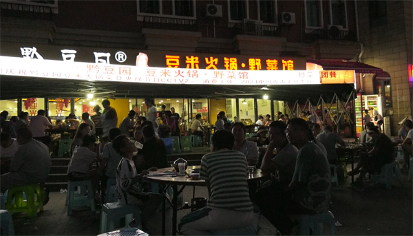 一个人的安顺乡愁文化园因聚集了各种安顺特色美食,吸引了来自全国各地的游客进店消费。华灯初上,就餐的游客来来往往。