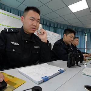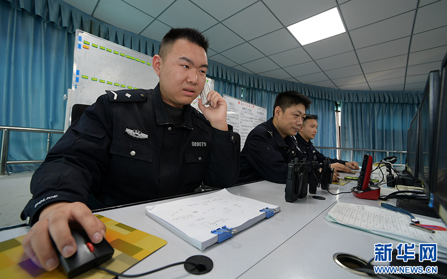 交通民警在贵州省黔南布依族苗族自治州公安交通管理局指挥中心值守。新华社记者 杨楹 摄