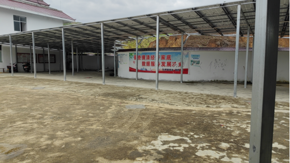 8月28日上午,与何筱萍取得联系后,我便带领办公室的同志来到规模村活动室采访。刚到活动室,映入眼帘的屋顶分布式光伏板十分亮眼,光伏板下方工人顶着烈日正在紧张有序装修儿童之家、老年服务中心,旁边还有已经建好的光伏停车棚和部分健身设备。