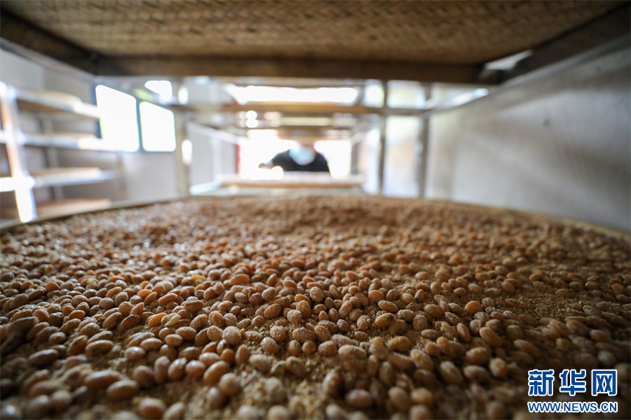 村民在贵州省铜仁市江口县民和镇艾坪村一家古法酱油加工厂查看黄豆酱料(8月29日摄)。新华网发(李鹤 摄)