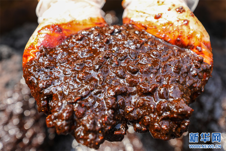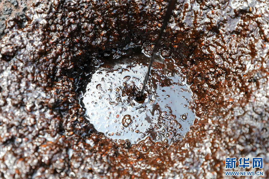 在贵州省铜仁市江口县民和镇艾坪村一家古法酱油加工厂拍摄的黄豆酱料(8月29日摄)。新华网发(李鹤 摄)